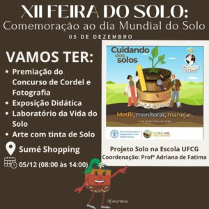 Promovido pelo projeto Solo na Escola, da Universidade Federal de Campina Grande (UFCG), sob a coordenação da professora Adriana de Fátima, o evento acontecerá das 8h às 14h e contará com uma programação diversificada e educativa.