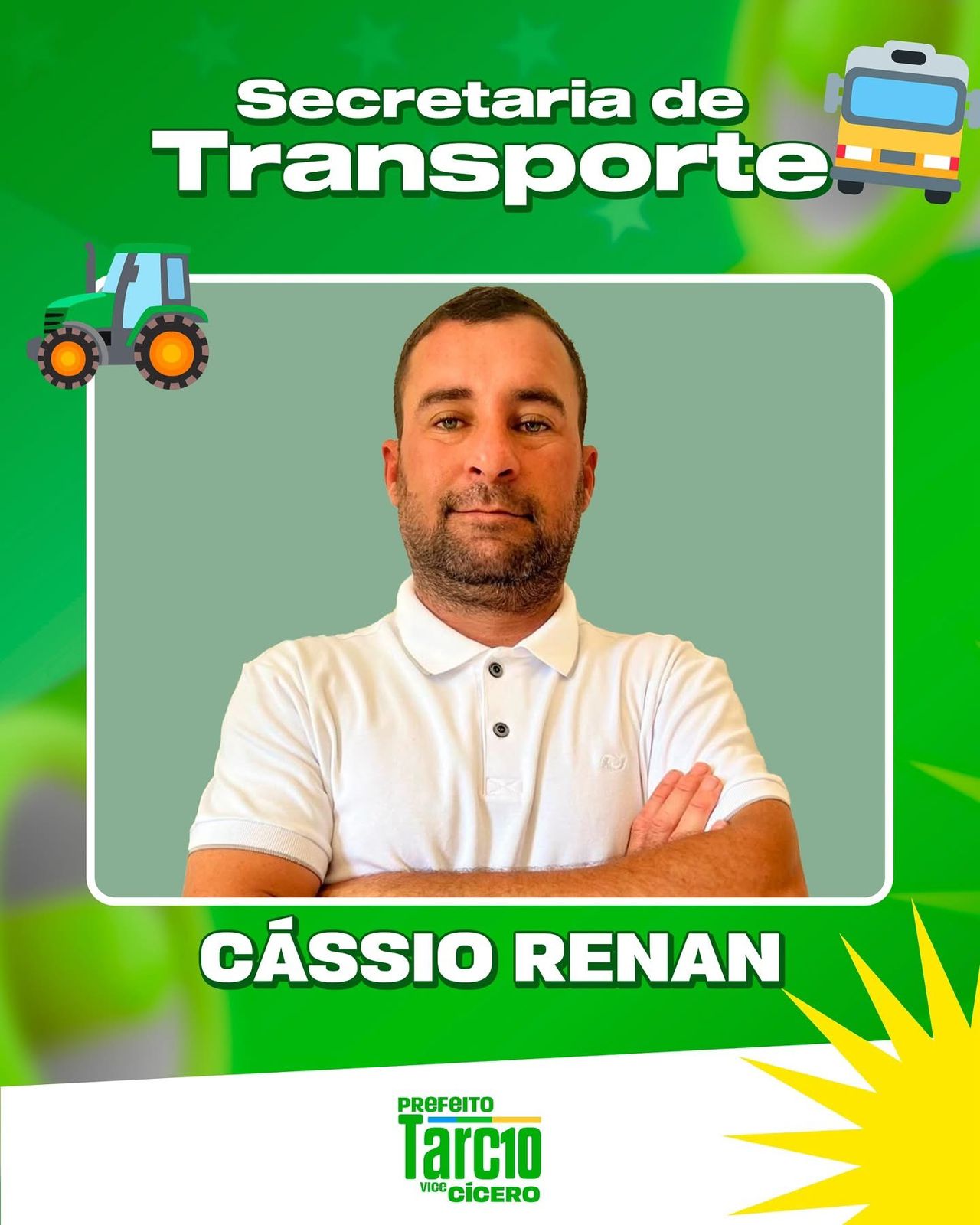 O prefeito eleito de Amparo, Tarcio Gabriel, anunciou o nome de Cássio Renan Silva Brito, conhecido popularmente como Cássio de Marinezio, como gestor da pasta de Transporte.