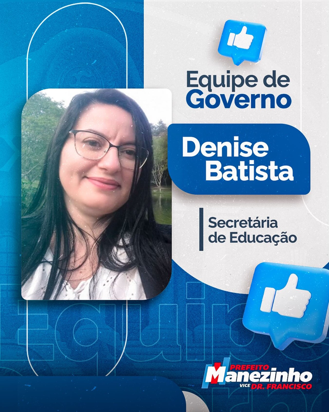 O prefeito eleito de Sumé, Manezinho Lourenço, anunciou nesta terça-feira (10), o nome da professora Denise Batista, como secretária de Educação do seu governo a partir de janeiro.