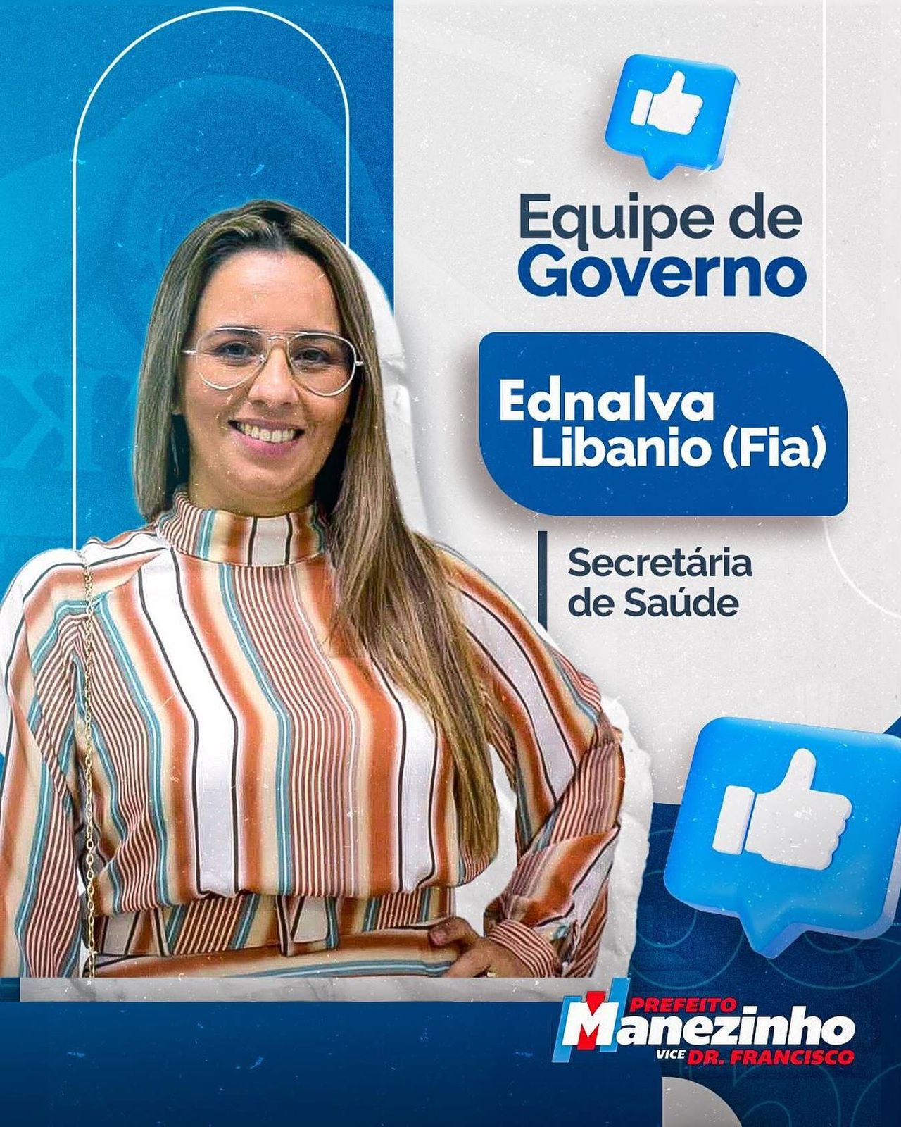 O prefeito eleito de Sumé, Manezinho Lourenço, anunciou neste sábado (14), o nome da futura primeira dama, Ednalva Libanio (FIA), como secretária de Saúde do seu governo a partir de 01 de janeiro.