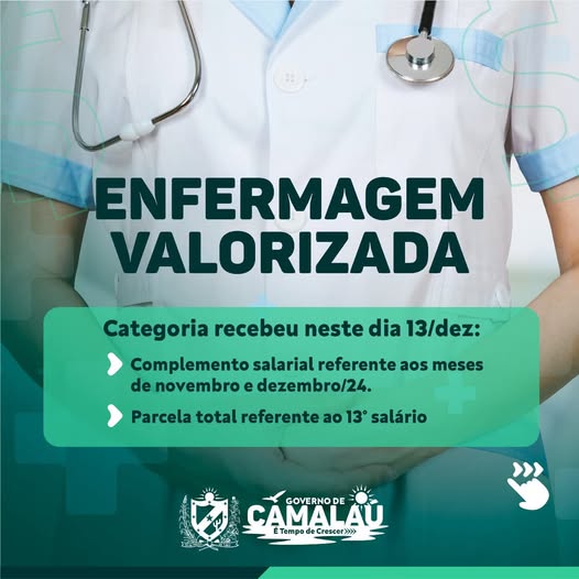 Além da segunda parcela do décimo terceiro, a Prefeitura de Camalaú também regularizou o pagamento do complemento do piso para os profissionais de enfermagem referente aos meses de novembro e dezembro.