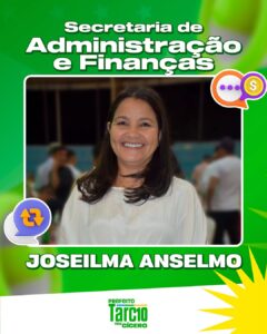 O prefeito eleito de Amparo, Tarcio Gabriel, anunciou o nome de Joseilma Anselmo, conhecida popularmente como Joseilma, como gestora da pasta de Administração e Finanças do município, a partir de 01 de janeiro.