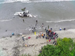 O acidente aconteceu próximo ao aeroporto da cidade, no Centro. Vídeos que circulam nas redes sociais mostram o avião cruzando a pista em velocidade. A aeronave se choca com um veículo e explode já na faixa de areia. Outros vídeos mostram uma aglomeração de pessoas e resgatistas em torno dos escombros do avião, que parou na beira do mar.