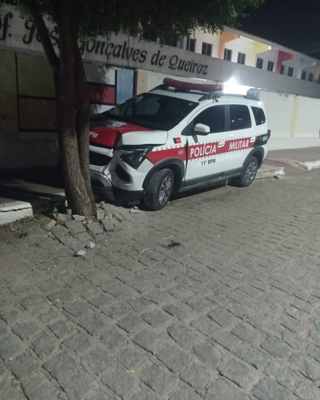 Na rua Epitácio Pessoa, já na curva da rua Guiomar Coelho, próximo ao colégio estadual emparelharam com a viatura e na curva o policial perdeu o controle da viatura vindo a bater na árvore. Os Policiais não ficaram feridos e os dois elementos fugiram.