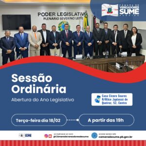 Os vereadores de Sumé irão participar nesta terça-feira (18), da sessão que inaugura os trabalhos na Casa Cícero Soares no ano de 2025.