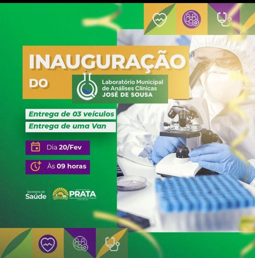 A Prefeitura de Prata, por meio da Secretaria de Saúde, realizará no próximo dia 20 de fevereiro, às 9h, a inauguração do Laboratório Municipal de Análises Clínicas José de Sousa. O novo espaço visa oferecer exames laboratoriais com mais eficiência e acessibilidade para a população, fortalecendo os serviços de saúde no município.