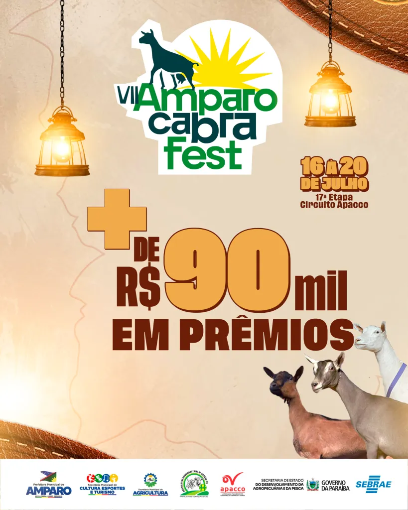 “É com grande alegria e orgulho que anunciamos que a VII edição da Amparo Cabra Fest contará com uma premiação histórica de mais de 90 mil reais! Esse é um marco que demonstra o quanto acreditamos no potencial da nossa gente, da nossa cultura e da nossa tradição no setor da caprinocultura.”