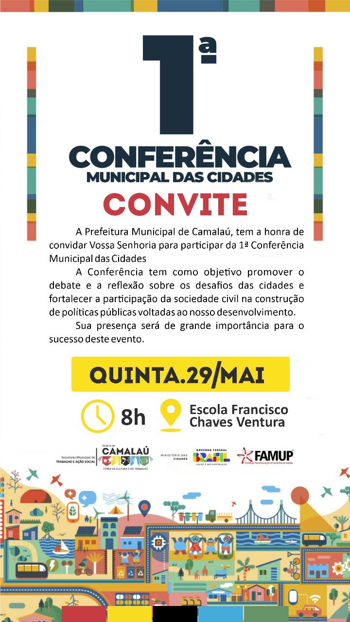 Com o objetivo de fortalecer a participação popular na formulação de políticas públicas, a conferência será um espaço de diálogo e reflexão sobre a construção de cidades mais inclusivas, sustentáveis e justas. A iniciativa conta com o apoio da Secretaria Municipal de Trabalho e Ação Social, Ministério das Cidades, Governo Federal e FAMUP (Federação das Associações de Municípios da Paraíba).
