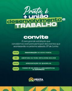 A cidade de Prata se prepara para um sábado (07 de junho) repleto de atividades que celebram o desenvolvimento, a cultura e o protagonismo feminino. A Prefeitura Municipal, sob a liderança do prefeito Genivaldo Tembório, convida toda a população para participar de uma série de eventos que prometem movimentar a cidade a partir das 18h30.