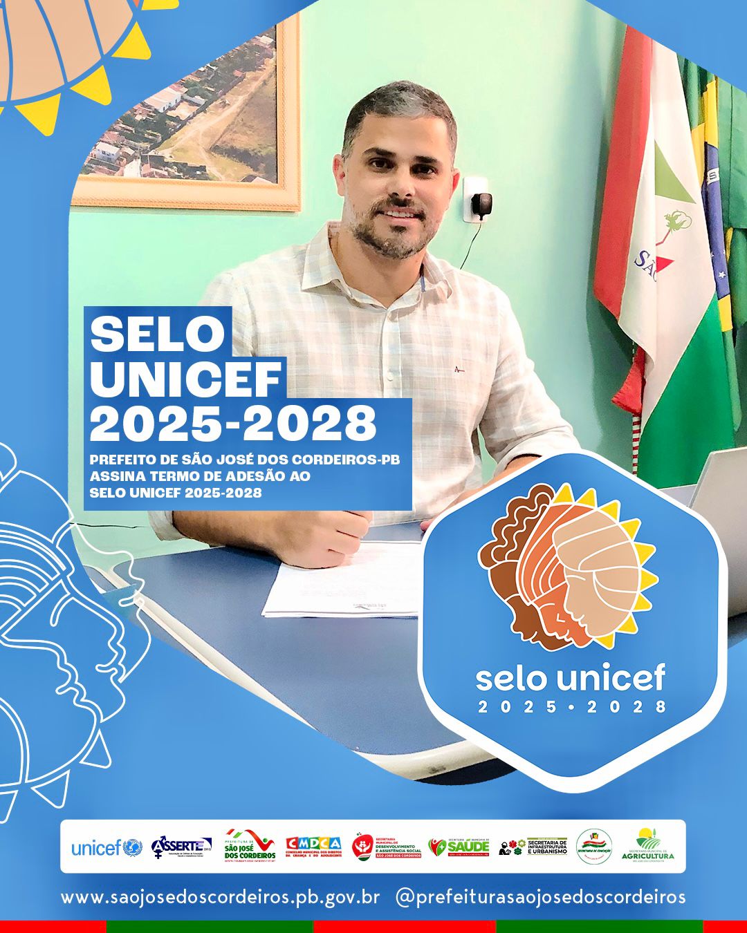 O prefeito Felício Queiroz assinou, nesta semana, o termo de adesão ao–Selo UNICEF, edição 2025-2028, reafirmando o compromisso da gestão municipal com a promoção dos direitos de crianças e adolescentes em São José dos Cordeiros.