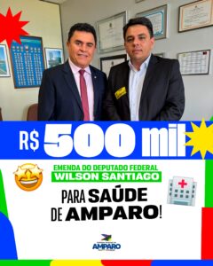 A cidade de Amparo celebra mais uma conquista importante na área da saúde pública. O município foi contemplado com uma emenda parlamentar no valor de R$ 500 mil, destinada pelo deputado federal Wilson Santiago. O recurso tem como objetivo fortalecer os serviços oferecidos à população e promover melhorias estruturais e de atendimento nas unidades de saúde locais.