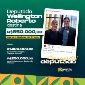 O município de Prata foi contemplado com uma importante emenda parlamentar destinada pelo deputado federal Wellington Roberto. Ao todo, foram R$ 650 mil destinados à área da saúde, com o objetivo de fortalecer os serviços de atenção primária à população.