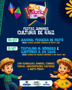 Com o tema “Festas Juninas – Cultura de Raiz”, a celebração acontecerá nas escolas da rede municipal nos dias 10 e 11 de julho, reunindo estudantes, educadores, famílias e toda a comunidade para uma programação repleta de tradição e encantamento.
