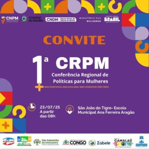 Com o tema “Mais democracia, mais igualdade, mais conquistas para todas”, a conferência integra a etapa preparatória para a 5ª Conferência Nacional de Políticas para as Mulheres, e é promovida pelo Ministério das Mulheres, Governo da Paraíba, Conselho Nacional dos Direitos da Mulher (CNDM) e prefeituras da região.