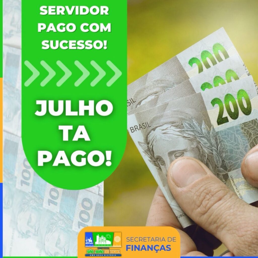 A Prefeitura Municipal de São João do Tigre realizou, nesta terça-feira (30), o pagamento dos salários de todos os servidores públicos municipais, referente ao mês de julho. A informação foi confirmada pela Secretaria de Finanças do município.