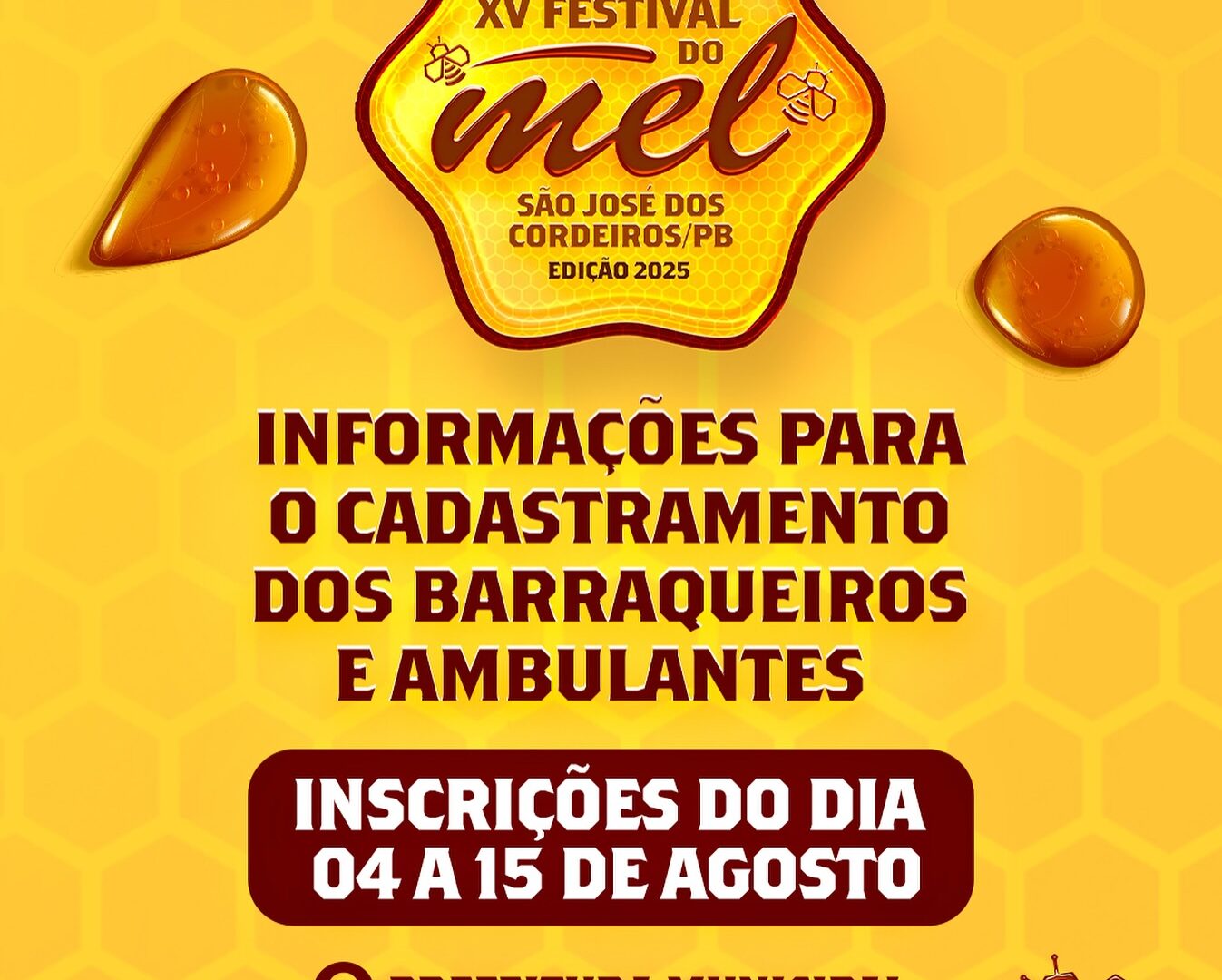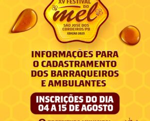 A Prefeitura de São José dos Cordeiros publicou um edital com as diretrizes para ocupação de espaços destinados à comercialização de alimentos e bebidas durante o Festival do Mel 2025. A iniciativa tem como objetivo garantir a organização do evento, que já é reconhecido pela estrutura e planejamento.