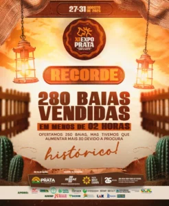 A XI edição da Expoprata, que acontecerá entre os dias 27 e 31 de agosto de 2025, no município de Prata-PB, já começa a fazer história antes mesmo de seu início oficial. Em menos de duas horas, todas as 280 baias disponibilizadas foram vendidas — um recorde absoluto para o evento, que tradicionalmente reúne criadores, produtores, expositores e o público em geral para celebrar a agropecuária regional.