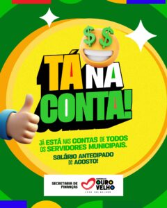 A Prefeitura de Ouro Velho realizou, nesta sexta-feira (15), a antecipação do pagamento dos salários referentes ao mês de agosto para todos os servidores municipais.
