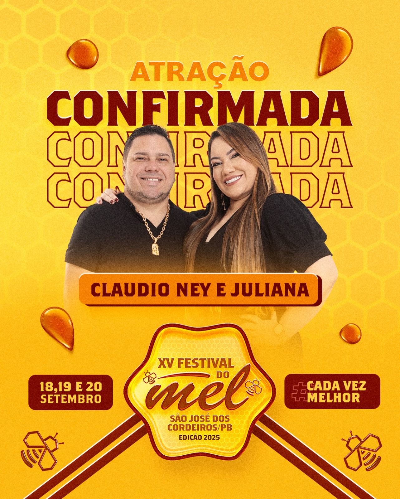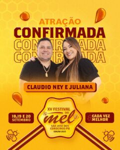 O prefeito Felício Queiroz anunciou oficialmente mais uma atração que vai agitar a XV edição do Festival do Mel. A dupla Cláudio Ney & Juliana, que vive o auge da carreira, está confirmada e promete um show contagiante de forró para levantar o público.