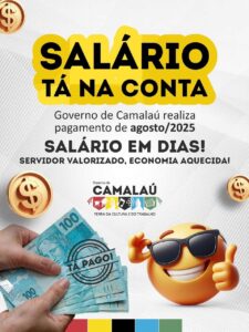 A Prefeitura de Camalaú efetuou nesta sexta-feira (30) o pagamento de todos os servidores municipais, referente ao mês de agosto. Os salários já estão devidamente creditados nas contas bancárias dos funcionários, garantindo tranquilidade e segurança financeira a todo o funcionalismo público.