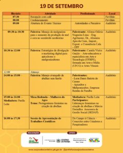 Com o lema “Cada vez melhor”, o evento reunirá produtores, estudantes, pesquisadores e profissionais do setor para uma série de palestras, oficinas e atividades técnicas, fortalecendo a apicultura e a meliponicultura na região.