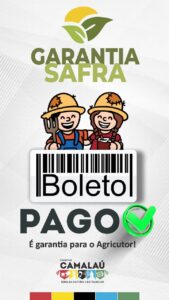 A Prefeitura Municipal de Camalaú confirmou nesta semana o pagamento dos boletos referentes ao programa Garantia Safra, assegurando tranquilidade e proteção a centenas de agricultores do município que enfrentam os efeitos da estiagem no Cariri paraibano.