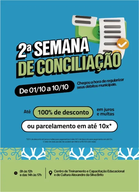 Através da Lei Complementar Nº059/2024, a Prefeitura de Monteiro concede a 2ª Semana de Conciliação, onde os contribuintes terão o benefício da anistia de multas e remissão de juros ao quitarem seus débitos junto à Fazenda Pública Municipal.