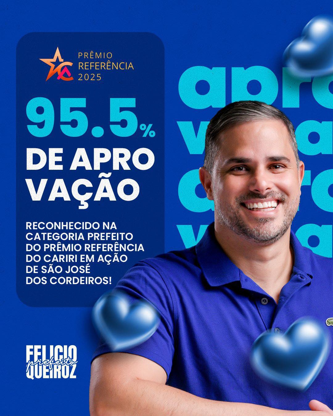 “Recebo esse resultado com muita alegria, satisfação e gratidão. Esse reconhecimento me enche de orgulho e, acima de tudo, reforça meu compromisso de continuar trabalhando com dedicação pelo desenvolvimento da nossa terra e pelo bem de cada cordeirense”, afirmou o prefeito.