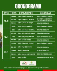 A Prefeitura de São José dos Cordeiros, por meio da Secretaria Municipal de Agricultura, divulgou o cronograma de inscrições para o Programa Corte de Terras 2026. A iniciativa tem como objetivo garantir apoio aos agricultores do município na preparação do solo para o cultivo da nova safra.