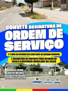 A gestão municipal também dará início ao processo de reforma da Escola Ildefonso Anselmo da Silva, uma das unidades de ensino mais tradicionais da cidade, reforçando o compromisso com a educação e a valorização dos ambientes escolares.