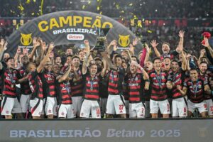 O Maracanã viveu uma noite de festa e coroação. Nesta quarta-feira (3), o Flamengo venceu o Ceará por 1 a 0, gol de Samuel Lino, e sagrou-se campeão do Brasileirão 2025 diante de mais de 73 mil torcedores. A conquista veio cinco dias após o título da Libertadores, selando uma temporada histórica para o clube carioca.