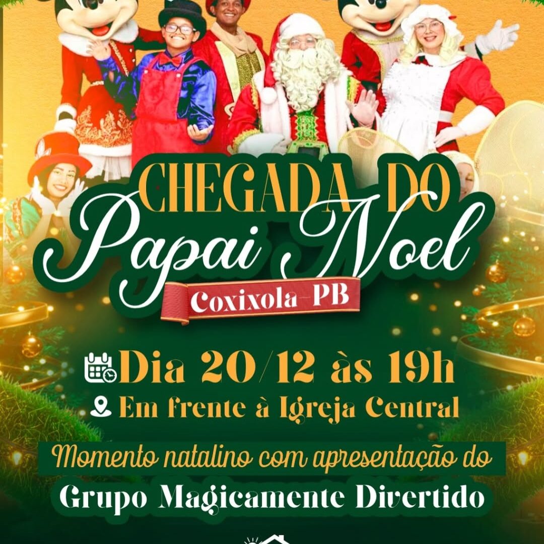 A Prefeitura Municipal de Coxixola promoverá, neste sábado (20/12), às 19h, um momento especial para celebrar o espírito natalino com a chegada do Papai Noel. A ação faz parte da programação de fim de ano do município e tem como objetivo levar alegria, confraternização e fortalecer as tradições culturais da cidade.
