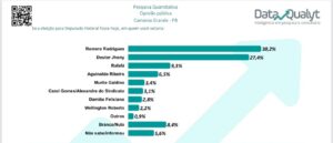 Ao comentar o resultado, Doutor Jhony destacou que os números refletem um trabalho construído com diálogo e compromisso com a população. “Recebo esse resultado com muita responsabilidade. Ele mostra que Campina Grande está atenta a propostas, a trabalho sério e a projetos que olhem para as pessoas. Seguiremos caminhando com humildade, ouvindo a população e apresentando ideias para contribuir com o desenvolvimento da cidade e da Paraíba no Congresso Nacional”, afirmou.
