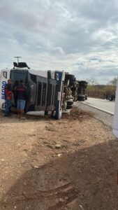 Um acidente de trânsito foi registrado na manhã desta terça-feira (23) no município de Monteiro, no Cariri paraibano. Uma carreta perdeu o controle e tombou na BR-110, nas proximidades da Vila Produtiva Lafayette.
