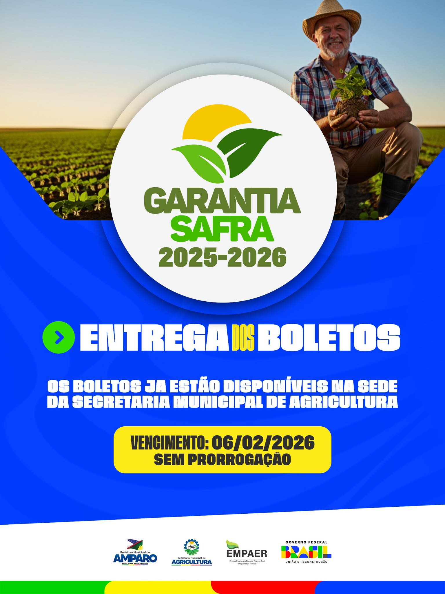 A Prefeitura de Amparo, por meio da Secretaria Municipal de Agricultura, iniciou a entrega dos boletos referentes ao Programa Garantia-Safra 2025/2026 para os agricultores familiares cadastrados no município. A medida é fundamental para assegurar a permanência dos produtores no programa, que oferece apoio financeiro em caso de perdas na produção provocadas por estiagem ou excesso de chuvas.