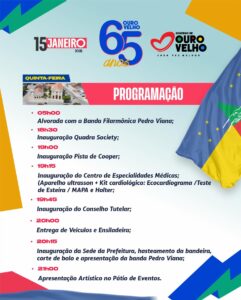 O prefeito Dr. Júnior anunciou oficialmente a programação comemorativa pelos 65 anos de emancipação política de Ouro Velho, celebrados na quinta-feira, 15 de janeiro de 2026. A data será marcada por uma agenda intensa, que reúne atos cívicos, inaugurações, entregas de equipamentos e grandes atrações musicais.