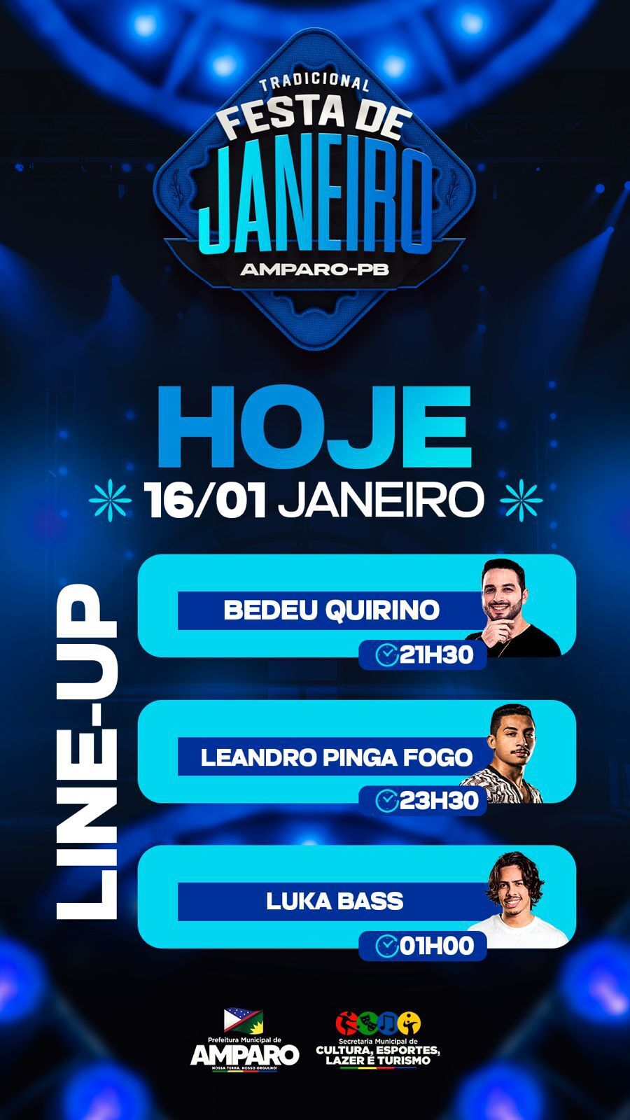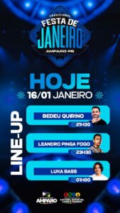 A programação segue amanhã, sábado (17 de janeiro), com uma noite dedicada ao forró e aos grandes sucessos que embalam gerações. Sobem ao palco a Banda Imagem, Flávio José e Luan Estilizado, prometendo atrair um grande público e manter o ritmo da festa em alta.