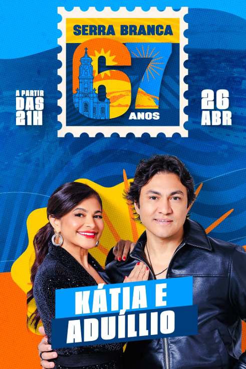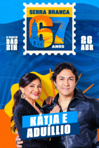 A Prefeitura de Serra Branca segue divulgando a programação cultural em comemoração aos 67 anos de emancipação política do município e confirmou mais uma grande atração para a festa: a dupla formada por Aduílio Mendes e Kátia Cilene, dois nomes consagrados do forró nordestino.