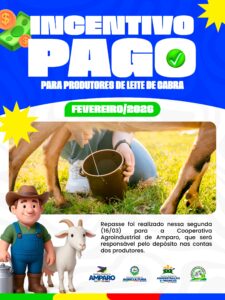 A Prefeitura de Amparo confirmou que já foi efetuado, nesta segunda-feira (16), o pagamento do incentivo referente ao mês de fevereiro de 2026, destinado aos produtores de leite de cabra do município. A iniciativa reforça o compromisso da gestão municipal com o fortalecimento da produção rural e a valorização dos trabalhadores do campo.