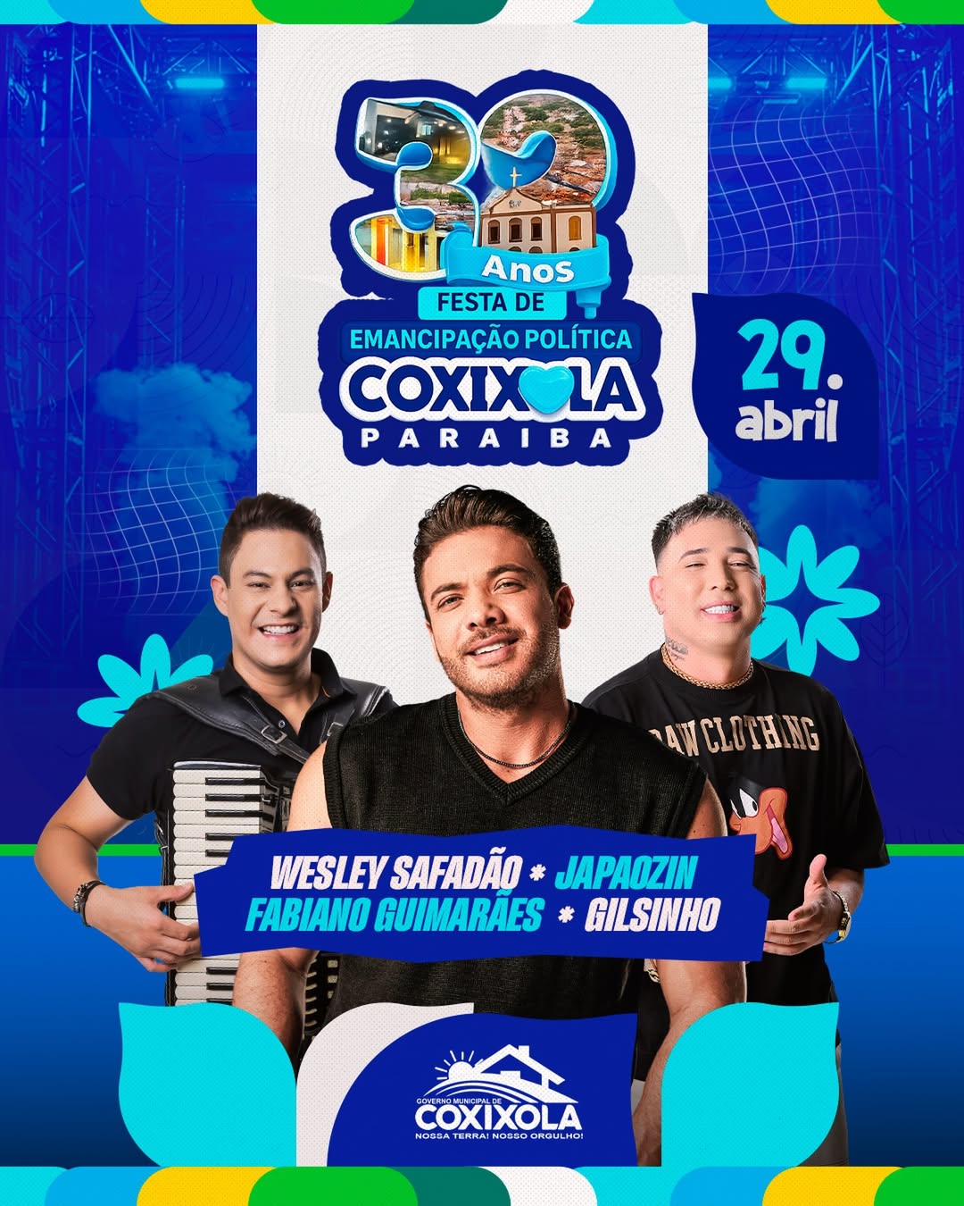O evento, organizado pela Prefeitura Municipal, deve atrair uma multidão e movimentar toda a região, consolidando Coxixola como palco de grandes celebrações no Cariri paraibano. A expectativa é de uma estrutura grandiosa, com segurança, organização e muita energia para marcar essa data especial.