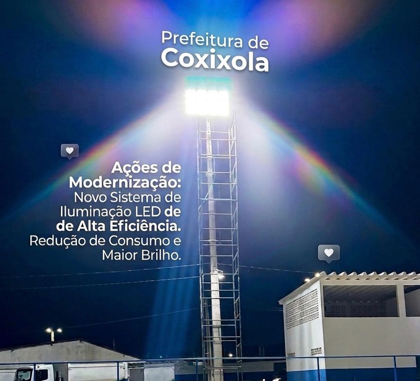 A Prefeitura de Coxixola deu início a mais uma importante etapa de investimentos na infraestrutura esportiva do município. O prefeito Nelsinho Honorato anunciou que vez, a gestão municipal começou a instalação dos novos refletores do estádio municipal, avançando no processo de modernização do espaço.