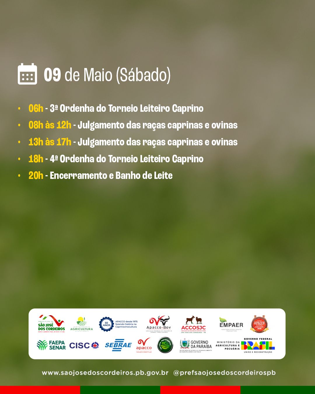 A Prefeitura de São José dos Cordeiros, por meio da Secretaria Municipal de Agricultura, anunciou a programação oficial da 9ª edição da tradicional Cabra na Praça, que será realizada entre os dias 7 e 9 de maio. O evento já integra o calendário rural do município e se consolida como uma das principais iniciativas de valorização da caprinocultura na região.